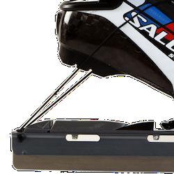van een kliksysteem. Deze schaatsijzers kunnen worden voorzien van elastiekjes, zodat de schaatsbinding goed terug klapt.